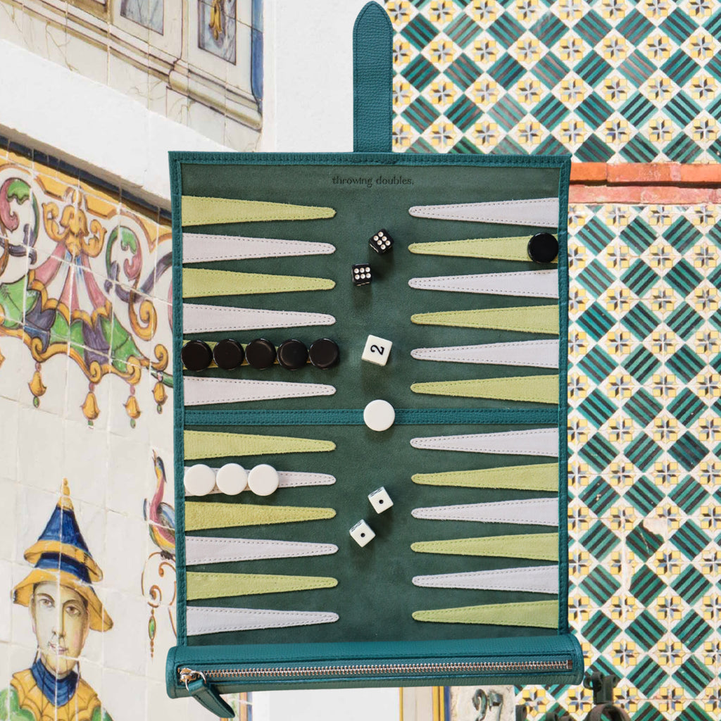 - Handmade in Los Angeles, the Italian leather travel backgammon set is a perfect addition to any globetrotter. The set features a leather base and a soft suede playing field. Ideal for the traveller who can’t resist a game on the go.